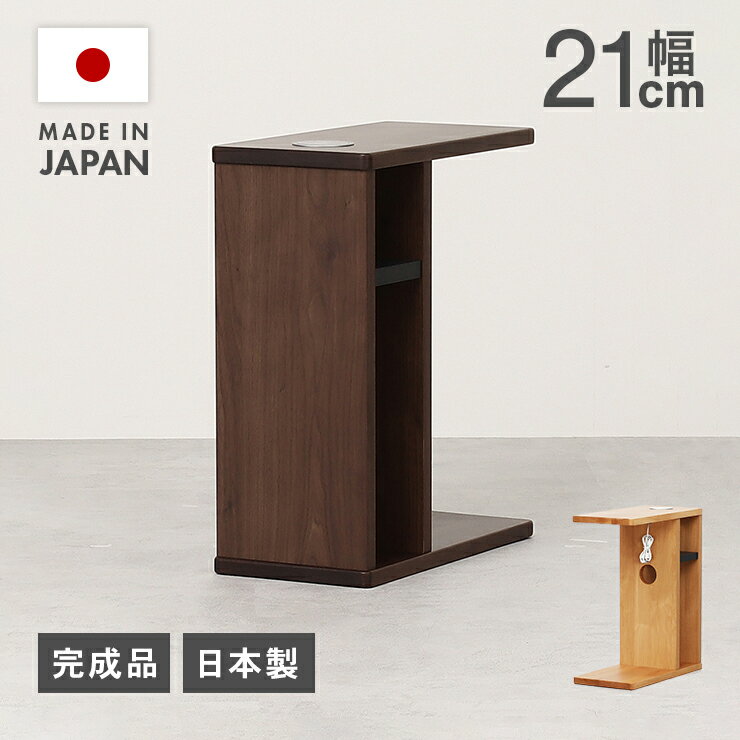 テーブル サイドテーブル 完成品 幅21cm 木製 収納 おしゃれ 北欧 国産 日本製 棚付き ソファー横 ベッド横 コーヒーテーブル てーぶる