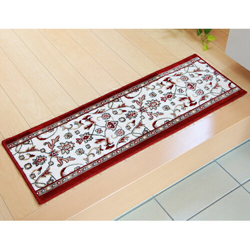 玄関マット あがり框 洗える モケット織り 王朝柄 メンデル ワイン 約30×90cm 滑りにくい加工 イケヒコ