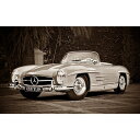 絵画風 壁紙ポスター (はがせるシール式) メルセデス ベンツ 300SL ロードスター 1957年 セピア キャラクロ M30L-006W1 (ワイド版 921mm×576mm) <日本製> ウォールステッカー お風呂ポスター