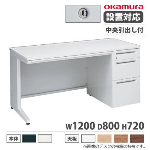 【最大1万円クーポン11/20-26】 【設置無料】 オカムラ アドバンス オフィスデスク 平机 L脚タイプ 中央引出し付 幅1200×奥行800mm ワークデスク パソコンデスク スチールデスク 日本製 3V2NBJ