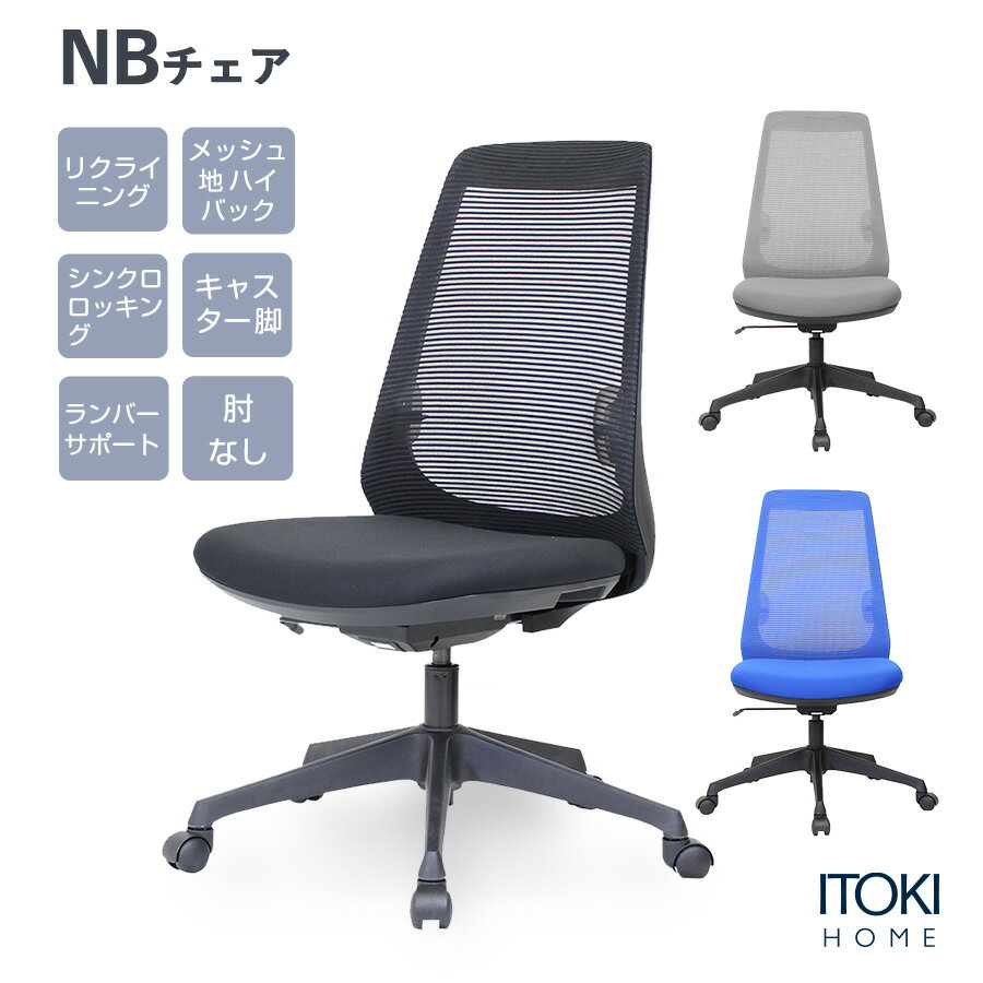 オフィスチェア イトーキ NBチェア ハイバック リクライニング メッシュ 通気性 昇降 座面回転 キャスター ITOKI JNBJ-1110-BB メーカー直販 公式 チェア ワークチェア OAチェア デスクチェア パソコンチェア