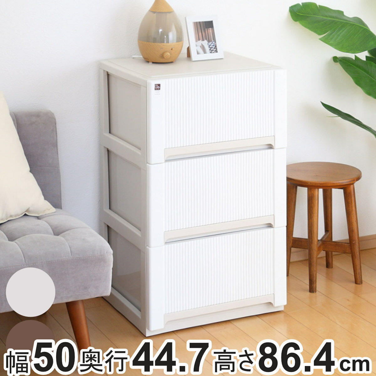 収納ケース オーラ 50 深型 3段 引き出し ( 幅50×奥行44.7×高さ86.4cm チェスト 収納 キャスター付き 衣装ケース クローゼット収納 押し入れ 日本製 収納ボックス おもちゃ箱 衣類 洋服 衣替え タンス プラスチック おしゃれ )