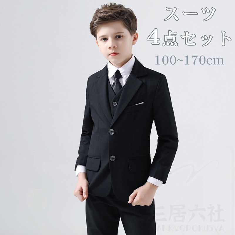 商品説明 商品名 キッズ 男の子 スーツセット ブラック 4点セット 使用シーン 卒業式や、結婚式、発表会など、セレモニーから冠婚葬祭まで幅広いシーンで活躍します。 カラー/サイズ 写真参考 ご注意 ※商品写真はできる限り実物の色に近づけるよう加工しておりますが、お客様のお使いのモニター設定、お部屋の照明等により実際の商品と色味が異なる場合がございます。あらかじめご了承下さい。 ※在庫状況は常に確認しておりますが、他店舗との併用管理となっておりますので、更新の時間差で完売・予約終了した商品が購入可能になっている場合がございます。予めご了承ください。 ※万一不良品であった場合、未使用の商品のみ到着日から7日間以内にご連絡頂ければ、対応させて頂きます。7日間以上のなら、対応できません。ご理解くださいませ。 【原産国】 中国 材質 綿混紡、ポリエステル