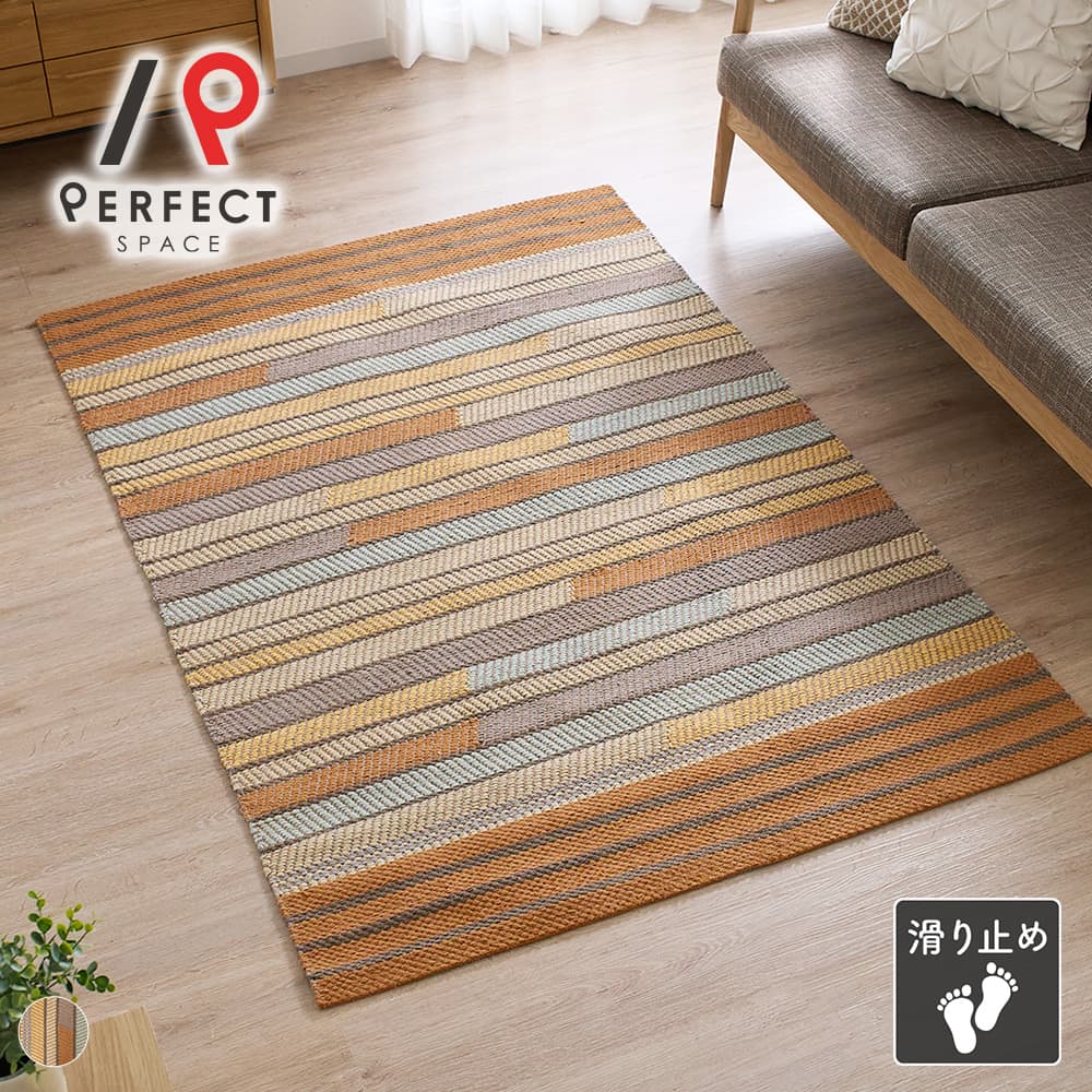 メーカー直送 岐阜県の工場より、佐川急便で出荷いたします。 ※沖縄・離島の場合はヤマト運輸個性派ストライプがアクセント!風合いを楽しむコットンラグ 色合いも太さもランダムなストライプがぱっと目を引くデザインラグ。それぞれのストライプの中にもさらに斜線状の模様が描かれており、手の込んだ印象の1枚です。ひとつひとつ手作業で作製されているためサイズに多少の誤差があることも、一点もの感がかえって味わい深さをプラスしてくれます。 近くで見てもおしゃれなデザインラグ多色な色使いはもちろん、柄の向きによって目の向きも変わるので近くでみても面白いデザインです。 1年中快適なコットン100%汗を吸収し、素早く発散するという特性をもつ綿(コットン)。素足でもサラサラだから、1年中快適に過ごせます。 フラットなラグなら、お手入れも簡単毛足がなく、比較的フラットな仕上がりのため、毎日のお手入れが簡単です。すべり止めも敢えて付けていないため、移動する際も楽々。 思わず自慢したくなる、ラグが主役のインテリアシンプルな空間に、個性が光るお気に入りのデザインラグをプラス。あっという間に、どこかエスニックな装いの特別な空間の完成です。ようこそ、自慢のマイルームへ! 商品詳細 機能 素材 綿100% サイズ 90×130cm・130×190cm 梱包形態 折り畳み梱包 原産国 インド 注意事項 ※ご使用のPC、スマホのモニターの環境によって色の見え方が違いますのでご了承ください。※開封直後、素材または製品特有の匂いがある場合がございます。人体に有害ではありません。広げておいて換気すると数日で気にならなくなることがほとんどです。
