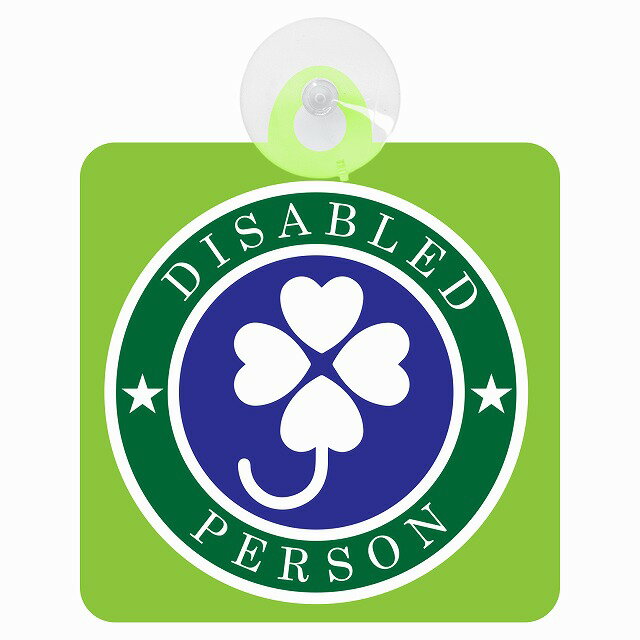 セーフティサイン 障がい者マーク DISABLED PERSON クローバー グリーン 安全運転 車内用 吸盤タイプ 煽り運転対策 収れん火災防止タイプ
