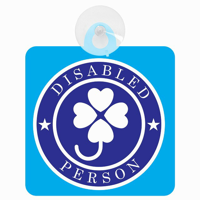 セーフティサイン 障がい者マーク DISABLED PERSON クローバー ブルー 安全運転 車内用 吸盤タイプ 煽り運転対策 収れん火災防止タイプ