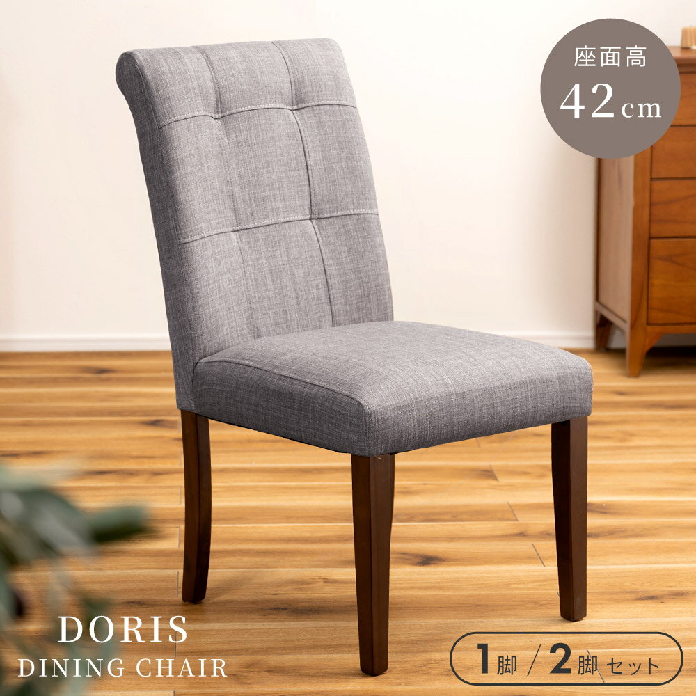 ダイニングチェア 2脚セット チェア チェアー 椅子 イス いす グレー 座面高42 木製 木脚 ダイニング椅子 お洒落 おしゃれ オシャレ ファブリック 布 固定脚 肘なし 肘掛けなし アームレス 食卓 シンプル モダン ブラウン グレ 新生活
