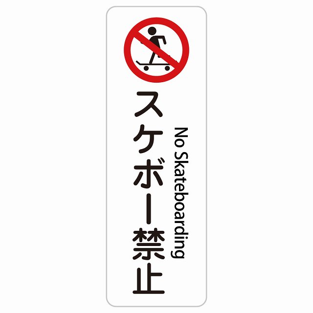 スケボー禁止 No Skateboarding 10x30cm 20x60cm インバウンド 多言語 英語 外国語 英語表記 ステッカー sticker サインステッカー シール 三角コーン ポール パイロン 屋内 屋外 防水 安全対策 迷惑行為 案内 看板 注意 警告
