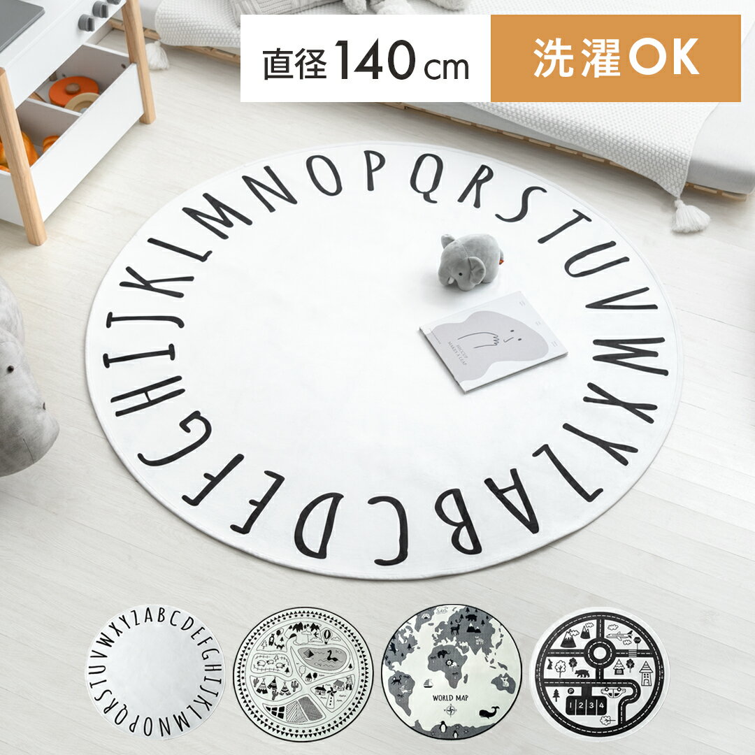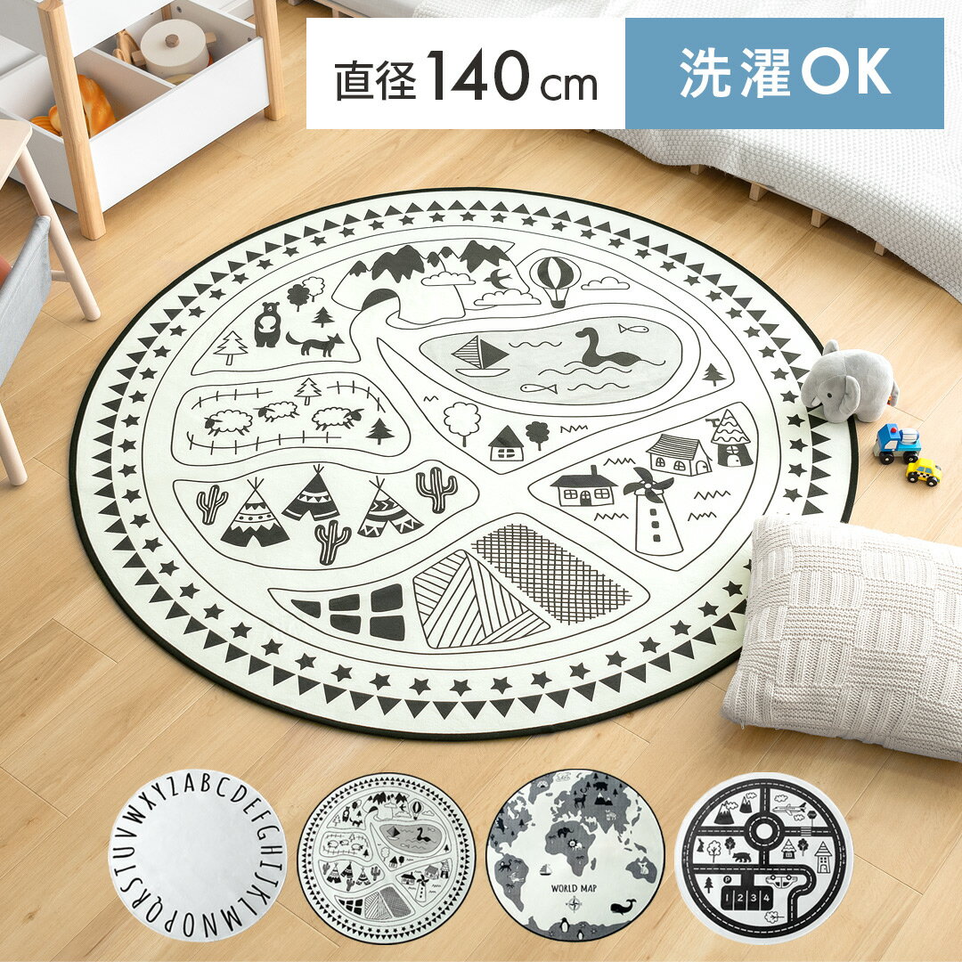 プレイマット 道路 キッズマット キッズラグ 遊べるマット 子供部屋 ラグ ラグマット カーペット 洗える おしゃれ マット キッズ 女の子 男の子 こども かわいい キッズルーム 地図 床暖房対応 イラスト おもちゃ モノトーンキッズラグ 円形140cm