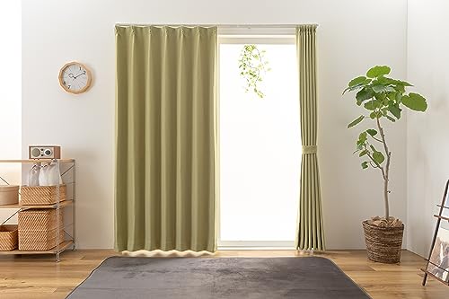 ユニベール ドレープカーテン 2級遮光 防炎 形状記憶 幅200c×丈240c 1枚 洗える グリーン ステイシー