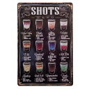 ブリキ 看板 SHOTS MENU ビンテージ調 エンボス サイン 30cm×20cm ■ ショット お酒 バー BAR メタルサイン 店舗用 壁掛け インテリア ショップ ガレージ 雑貨