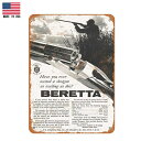 【ブリキ看板】【ベレッタ】Beretta ショットガン ビンテージ調 看板 30.5cm×23cm【1961 雑貨 インテリア 壁掛け ガレージ レトロ 広告 銃 ガン ミリタリー ブラック ホワイト】