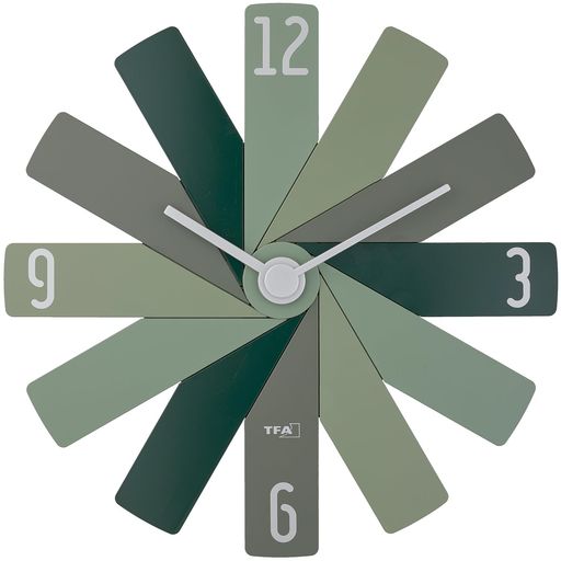アナログ 壁掛け時計 組み立て式 の紹介 ・12枚の羽根がおしゃれなデザイナーズクロック『CLOCK IN THE BOX』。 ・数字以外の羽根色を自由に移動できる、本体組み立て式。工具等を必要とせず、簡単に組み立てることができます。 ・圧迫感を感じにくい薄型設計。飾っても壁面がスッキリ。 ・サステナブルに配慮した、コンパクトなパッケージ。配送時や梱包材による環境問題に配慮して設計されました。 ・フリーランスのインダストリアルデザイナー、Andres Bruckner(1960〜)によるデザインです。ドイツのTFA社で25年にわたりデザインを手掛けています。 ・ご自宅用にはもちろんのこと、新築祝いや引越し祝いなどの新生活ギフトにもおすすめです。母の日や父の日、敬老の日など、普段の感謝を贈るイベントにもいかがですか? アナログ 壁掛け時計 組み立て式 の詳細 品名 CLOCK IN THE BOX カラー グリーン系、グレー系 サイズ 約)W40×H40×D4.2cm 総重量 約)335g 主な素材 プラスチック 仕様 壁掛け、アナログ、ステップムーブメント (※こちらの時計は、カチコチと音が鳴るステップムーブメントを使用しております。寝室などの静かな場所でのご使用は予めご注意ください。) 付属品 取扱説明書、保証書 (※電池は付属いたしません。単3乾電池×1本を別途ご用意ください。) 梱包 化粧箱入り メーカー メーカー:TFA Dostmann GmbH & Co. KG 社(ドイツ) 販売元 :ノア精密株式会社(日本) ラッピング ギフト(プレゼント・贈り物)用のラッピング無料で承ります。 メッセージカード、熨斗(のし)もお付け出来ます。 新築祝い、引越し祝い(引っ越し祝い)などにおすすめ。 配送方法 宅配便 商品カテゴリ インテリア > インテリア雑貨 > 時計 > 壁掛け時計 用途 壁掛け時計・掛け時計・壁時計・壁掛時計・かけ時計・ウォールクロック・自宅用・ギフト用・プレゼント用・贈り物用・新生活ギフト 使用場所 リビング・ダイニング・居間・広間・客間・客室・子供部屋(子ども部屋・こども部屋) ギフトにもおすすめです。 新築祝いや引越し祝い(引っ越し祝い)などの新生活ギフトや、開店祝い、開業祝いにぴったり! 誕生日プレゼントや記念日、母の日、父の日、敬老の日、クリスマスなど定番のギフトイベントにもおすすめです。 その他、結婚祝いや出産祝い、入学祝い、卒業祝い、成人祝い、就職祝い、退職祝い、快気祝いなどのお祝いに。 結婚内祝いや出産内祝い、快気内祝いなどのお返しにも。 ギフト(プレゼント・贈り物)用のラッピング無料で承ります。 メッセージカード、熨斗(のし)もお付けできます。 ギフト対応について ⇒壁掛け時計の一覧はこちら ⇒置き時計の一覧はこちら ⇒振り子時計の一覧はこちら ⇒電波時計の一覧はこちら 在庫数について・・在庫数より多いご注文をご検討のお客様は、お気軽にお問い合わせください。 何かご不明な点はございませんか? ・送料はいくらですか? >>こちらをクリック ・利用出来る支払方法は何ですか? >>こちらをクリック ・交換、返品は出来ますか? >>こちらをクリック ・ラッピングは出来ますか? >>こちらをクリックアナログ 壁掛け時計 組み立て式CLOCK IN THE BOX スタイリッシュな壁掛け時計。個性的なデザインがお好きな方におすすめの商品です。 羽根は、数字入りが4枚、無地が8枚入っています。数字以外の羽根の位置は自由な順番で組み立て可能です。 デザイン性に加え、配送時や梱包材による環境問題に配慮して設計された、コンパクトなパッケージです。 ●電池は付属しておりません。単3乾電池×1本を別途ご用意ください。 カラー グレーとグリーンの2色からお選びいただけます。 ギフトにもおすすめ 新築祝いや引越し祝い(引っ越し祝い)などの新生活ギフトや、開店祝い、開業祝いにぴったり! 誕生日や記念日、母の日、父の日、敬老の日、クリスマスなど定番のギフトイベントにもどうぞ。 その他、結婚祝いや出産祝い、入学祝い、卒業祝い、成人祝い、就職祝い、退職祝い、快気祝いなどのお祝いに。 結婚内祝いや出産内祝い、快気内祝いなどのお返しにも。 ◆ おすすめ関連商品はこちら ◆ 【ご注文時の注意】 ※商品のイメージ写真はご使用のモニターの機種や環境により、実際の商品と色目が異なって見える場合がございます。イメージ違いなどの返品、交換は承れませんので予めご了承お願いいたします。 ※在庫の管理は十分に注意しておりますが、実店舗と同時販売のため欠品になってしまう場合もございます。その際はご連絡差し上げますので予めご了承お願いいたします。