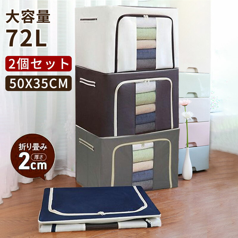 clothe33aaしっかり収納できる大容量72L/100Lサイズの収納ボックスです 収納時に便利な機能も多数! 【取り出し小窓】 取り出し口が上部、前面の2箇所あるので、積み重ねた状態でも簡単に取り出せます。 【透明窓付き】 正面に窓が付いているので外から中の物が見え何が入っているか一目瞭然! 積み重ねたままスムーズに中身を取り出せます。 【頑丈フレーム】 積み重ねても衣類に負担がかからず、シワやダメージから繊細な衣類を守ります。 【ダブルファスナー】 デザイン性と、利便性に優れたダブルファスナーで ちょっとした衣類の取り出しも簡単です! 【コンパクトに収納】 使わないときは、折りたたんで場所要らず! クローゼットちょっとした隙間にも収納できます。