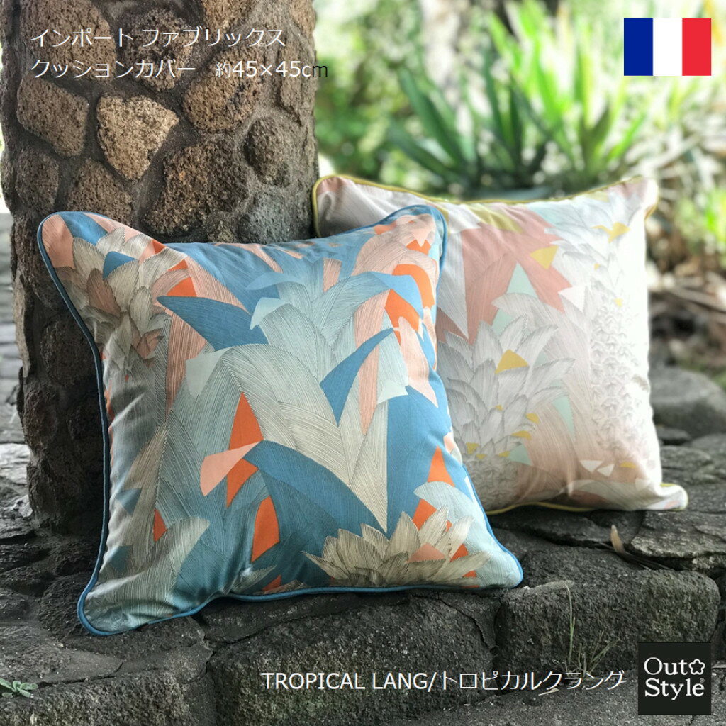 【BFクーポン配布中!】クッションカバー 45x45 おしゃれ TOROPICAL KLANG/トロピカル クラング インポート生地 フランス製 輸入生地 綿 コットン 日本製 線画 リゾート アジアン雑貨 オリエンタル エスニック【メール便OK】