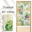 のれん 麻入り トロピカル 85×150cm 暖簾 南国 総柄 モンステラ ボタニカル おしゃれ 間仕切り 目隠し インテリア 部屋 洋室 リビング キッチン 台所 玄関 階段 子供部屋 ドア つっぱり パーテーション 85cm幅×150cm丈 ロング暖簾 ノレン リネン メール便