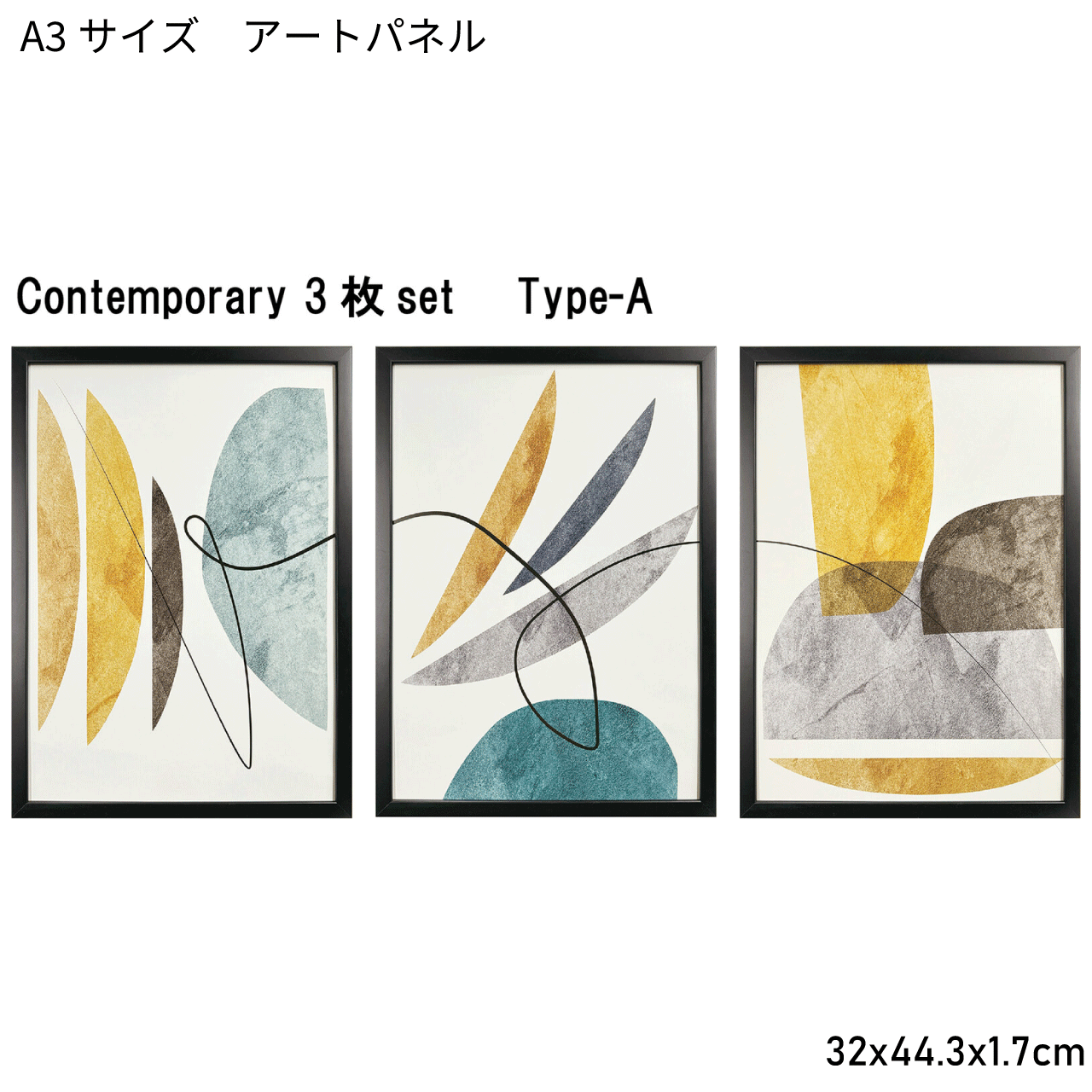 \スーパーSALE 12/5(金)23:59まで10%オフクーポン・5倍Pアップ/A3サイズ アートパネル Contemporary 3枚set Type-A 32x44.3x1.7cm インテリア 額入り アート アートパネル リビング 玄関 プレゼント 飾る おしゃれ 壁掛け 絵 送料無料