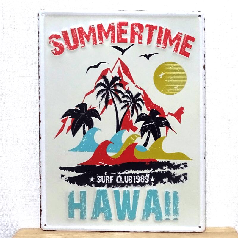 ブリキ看板 SUMMER TIME HAWAII ハワイ ビンテージ ヤシの木 アンティーク 南国 レトロ バー ガレージ プレート 壁飾り サマータイム アメリカン 雑貨 インテリア おしゃれ 可愛い バー カフェ 店舗