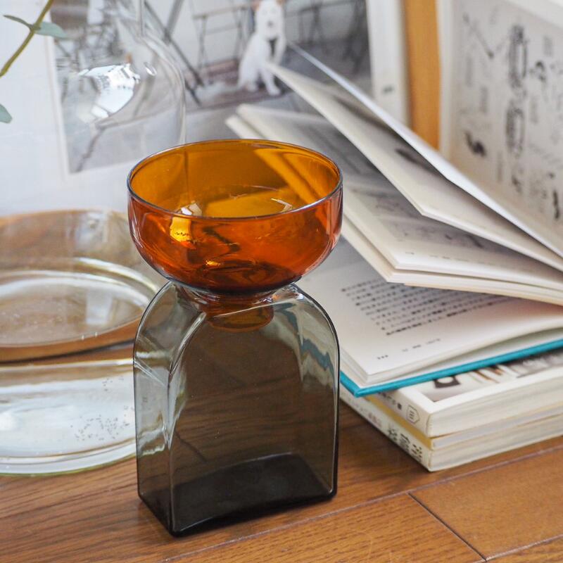 amabro TWO TONE VASE 花瓶 おしゃれ 一輪挿し 小さい 小さな フラワーベース ガラス シンプル 北欧 インテリア かわいい アンティーク ヴィンテージ ドライフラワー 水耕栽培 容器 グレー グリーン ブルー ピンク イエロー アンバー