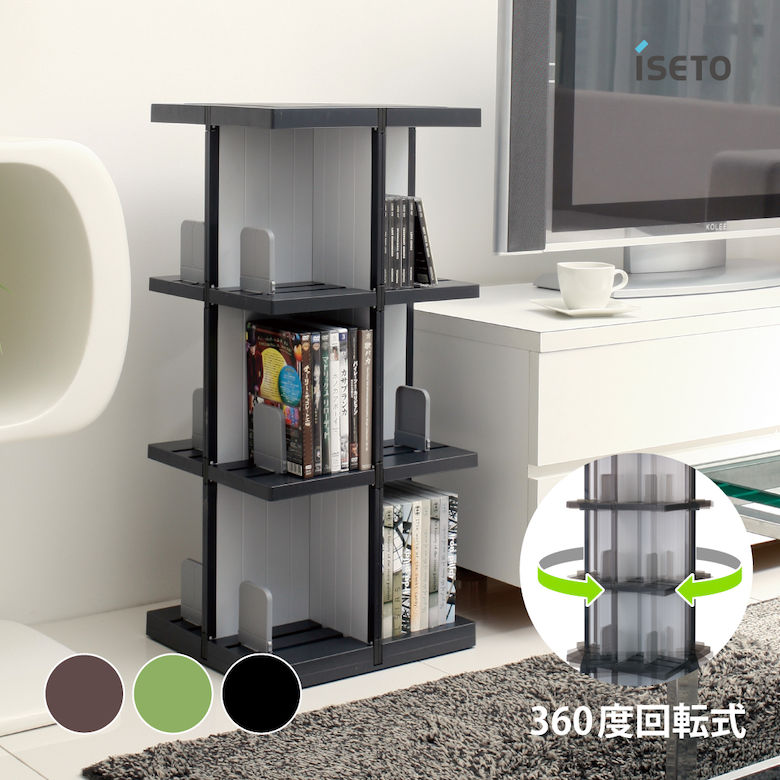 【商品説明】観たいとき、読みたいとき、聴きたいときに出し入れ簡単な回転式ラック。シックで落ち着いたカラーがディスプレイ棚に最適。また、狭いスペースに便利な回転式。【特長】●DEVIC意匠登録第1247176号●大容量で効率的な360°回転タイプ壁面に据え置く通常の棚に比べ、設置面積が少なく、しかも大容量●スライド式ストッパーつき●棚板1枚あたりの耐荷重約20kg●コミック約200冊(厚さ1.4cm目安)・ビデオ (VHSテープ)約120本・DVD約200枚(厚さ1.5cm目安)・CD約300枚(厚さ1cm目安)【サイズ】●(約)W353×D313×H1240mm【材質】●天板・棚板・ベース台・回転板 ・仕切板 大・小:スチロール樹脂●スライド式ストッパー・上下ストッパー:ポリプロピレン●回転コマ:ナイロン●すべり止めキャップ:ポリエチレン●ネジ:スチール【種類】●ブラウン I-486|4966149486104●グリーン I-486|4966149486111●ブラック I-486|4966149486128[伊勢藤 iseto 大容量 収納 雑誌 コミック 漫画 ビデオ VHS CD DVD 書斎 インテリア タワー型 省スペース 狭いスペース 収納ラック ディスプレイ リビング・デスク周辺収納 片付け 整理整頓 シンプルデザイン 機能的 便利]関連商品[10月エントリーでP10倍!] iseto デビック 3段 I-48...[10月エントリーでP10倍!] 浅香工業 棚 ニューファンシーラック...[10月エントリーでP10倍!] collend コレンド ワイヤーバ...5,980円7,760円9,160円[10月エントリーでP10倍!] 浅香工業 棚 ニューファンシーラック...[10月エントリーでP10倍!] collend コレンド ワイヤーバ...[10月エントリーでP10倍!] 浅香工業 棚 ニューファンシーラック...6,890円6,380円9,870円[10月エントリーでP10倍!] collend コレンド スリムラッ...[10月エントリーでP10倍!] 浅香工業 棚 ニューファンシーラック...[10月エントリーでP10倍!] 東谷 LFS-882BK ハンガー ...9,680円6,360円8,130円