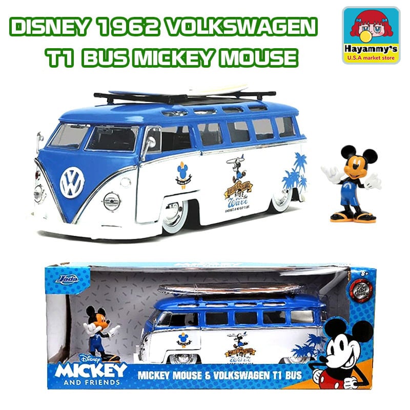 フィギュア ミッキーマウス ミニカー ワーゲンバス ディズニー 車 人形 サーフボード かわいい インテリア 置物 Mickey Mouse DISNEY 1962 VOLKSWAGEN T1 BUS MI アメリカン 雑貨 1/24 スケール キャラクター おしゃれ カフェ 店舗