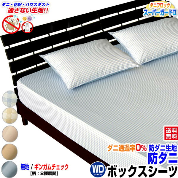 【あす楽】 ボックスシーツ ワイドダブル ベッドシーツ 送料無料無地/格子 防ダニ ベッド用 ボックスシーツダニを通さない生地 ダニブロック スーパーガードII花粉 アレルギー対策ワイドダブル 150×200×30cm【★★】