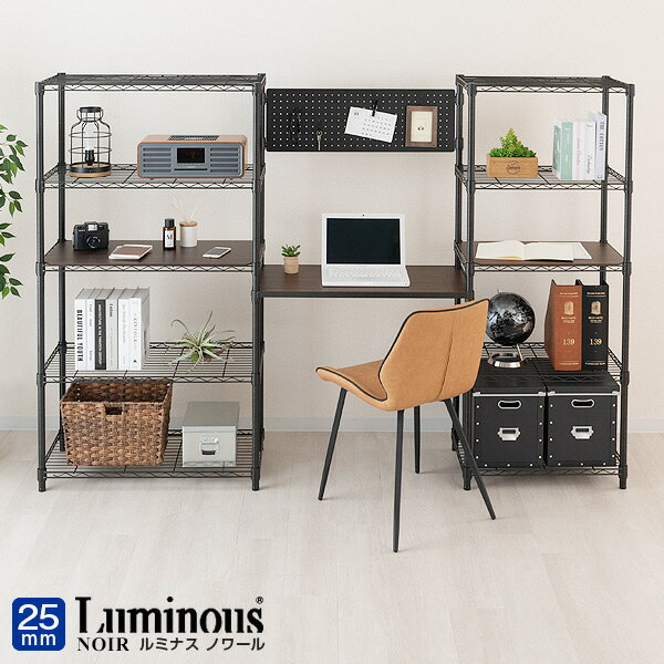 壁面収納 デスク 机 オープンシェルフ リビング収納棚 ラック スチールラック メタル ラック おしゃれ ブラック 黒 頑丈 オープンラック 子供 ルミナス ノワール ehn-80155&ehn-60155_no8040-wd_no25pb8025