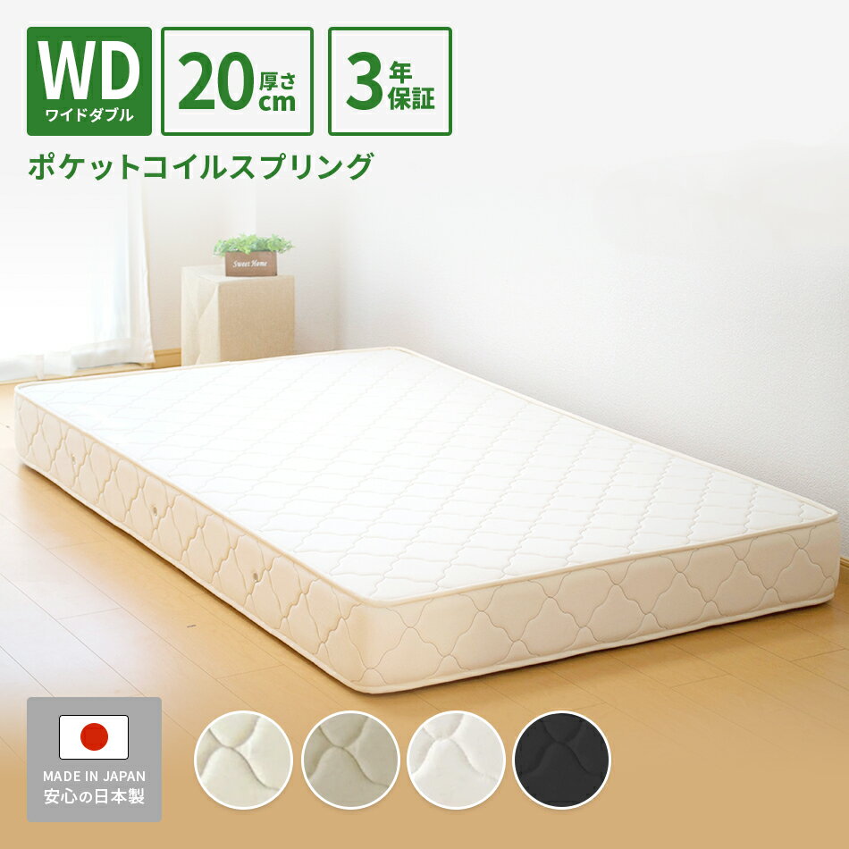 【3%OFFクーポン】 マットレス ワイドダブル 柔らかめ 柔らかい ポケットコイル 幅152cm 厚さ20cm スプリングマットレス ベッド 通気性 抗菌 防臭 防ダニ ベッドマットレス ポケットコイルマットレス オーダーメイド 日本製 開梱設置無料