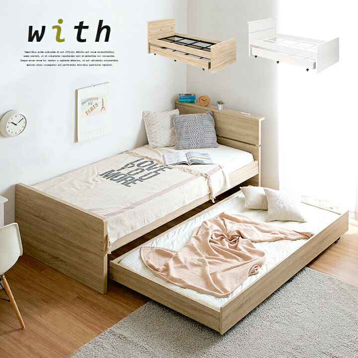 【ポイント9倍!今晩20時開始】【収納式/スライドタイプ/コンセント付】宮棚付き 親子ベッド with(ウィズ) 2色対応 二段ベッド 二段ベット 2段ベッド 2段ベット スライドベッド スライドベット 親子ベット 収納ベッド コンパクト 収納 ベッド 子供部屋