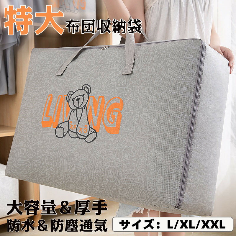 【大容量&収納力抜群】 カラー:写真通り 製品外寸(約) L50*30*25CMcm XL 60*40*25CM XXL 70*50*25CM かさばる荷物の収納や持ち運びにとっても便利! 生活の様々なシーンで便利な大容量/収納袋 丈夫な厚手の不織布製で通気性に優れたバッグ、持ち運びに便利なロング持ち手付き、汚れが目立たないブラックカラー 大きく開いて出し入れしやすいファスナー式。使用しない時は折り畳めるので場所を取らず省スペース ・ふとんや衣類の収納袋として/荷物が大きいコインランドリーへの持ち運び用として/引っ越しなどふとんなどの持ち運びや輸送用として/レジャーグッズの持ち運びやオフシーズンの収納袋として/お子様の保育園や幼稚園への寝具の持ち運びなど 使い方は様々です! ご注意: ■採寸方法により1-3CMの誤差が出る場合がございますので、予めご了承ください。 ■撮影及びモニターの原因で実物と色の差が出る場合がございます。予めにご了承ください。1