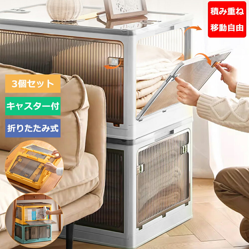 【3個組】収納ボックス 収納ケース コンテナー 折りたたみ カラーボックス キャスター付き コンテナ ボックス 折り畳み 前開き 上開き 4カラー S M L XL XXL 大容量 衣類 積み重ね 本 組立不要 おしゃれ 軽い 透明 引き出し 避難用 防災品収納 AZMKOO
