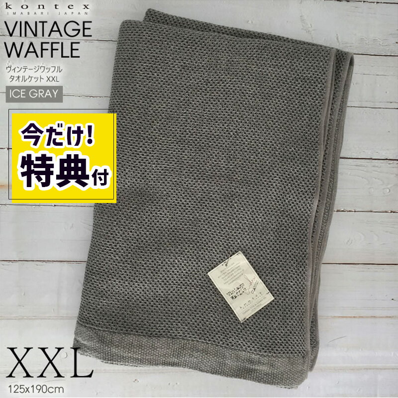 【今だけ特典付き(1980円相当)】寝具 掛け布団 ヴィンテージワッフル VINTAGE WAFFLE 厚手 タオルケット XXL 125x190cm IGY アイスグレー 夏 コットン95% リネン5% コットンリネン 綿麻 袋付き 日本製 今治 kontex コンテックス 42175-90