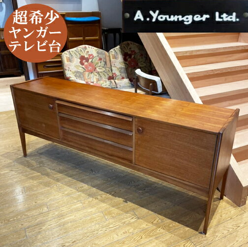 ヤンガー Younger サイドボード リビング ダイニング 寝室 ヴィンテージ アンティーク 家具 ミッドセンチュリー イギリス製 ヨーロッパ ヨーロピアン かわいい レトロ おしゃれ 幅198.5×奥行46.5×高さ73cm Y-1953 返品不可