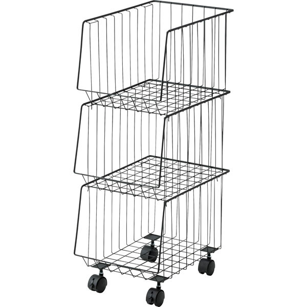 スタッキングワゴン3D 3段ワゴン スタッキング収納 キャスター付 洗面台 脱衣場 ゴールド ブラック ホワイト スチール製 組立品