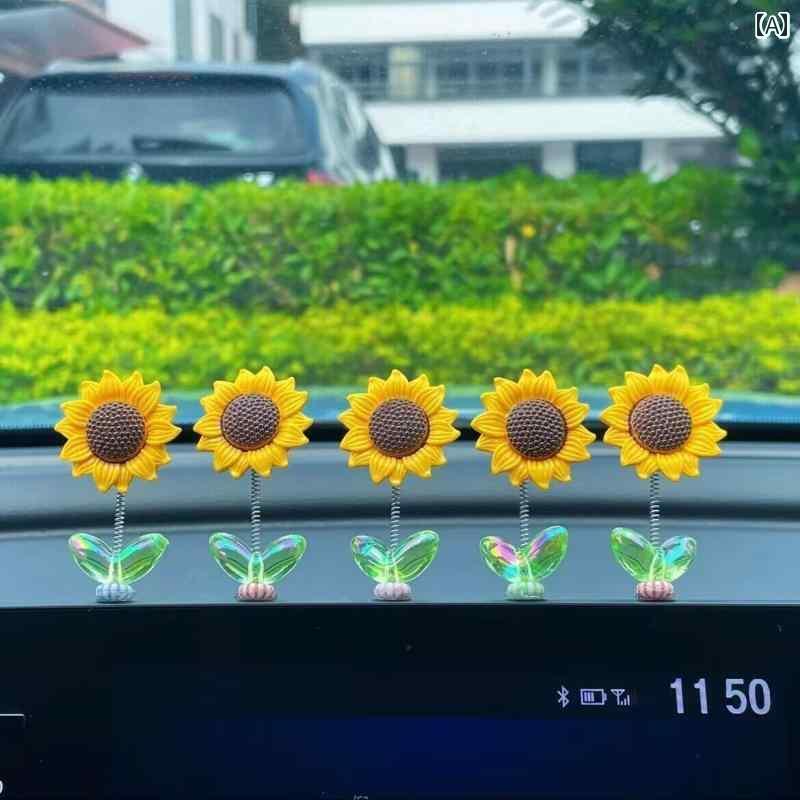 インテリア小物 置物 装飾 かわいい 揺れる ひまわりの 車 装飾品 癒しの さわやか 花 センターコンソールの バックミラーの 装飾 スイング
