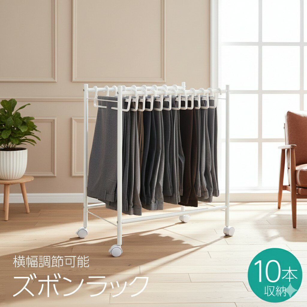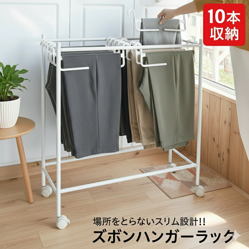 ズボンハンガーラック スラックスハンガー 10本収納 キャスター付き 省スペース ズボン ハンガーラック 便利グッズ 便利 新生活 zubon-rack
