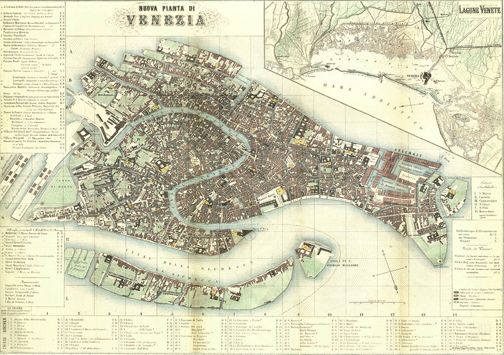 ポスター イタリア 地図 古地図 直輸入 イタリア製 おしゃれ ヴィンテージ レトロ インテリア 世界地図 大きい ISTITUTO FOTOCROMO ITALIANO / I.F.I ポスター/ラッピングペーパー 50×70 MAPPA VENEZIA CR075