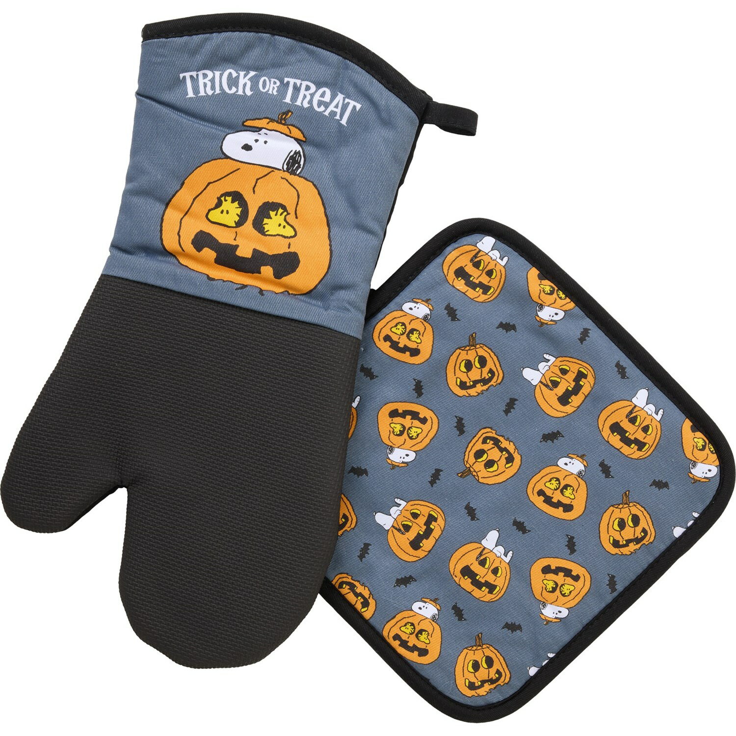 (取寄) ピーナッツ スヌーピー ハロウィーン ネオプレーン オーブン ミット アンド ポット ホルダー セット - 2-パック Peanuts Snoopy Halloween Neoprene Oven Mitt and Pot Holder Set - 2-Pack White/Orange/Blk