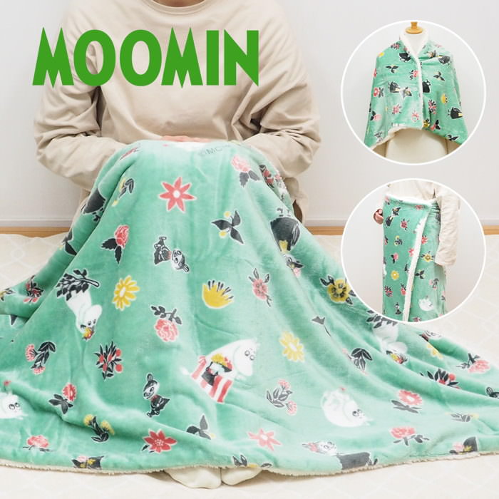 [あす楽] [ボア付3wayケープミント] ブランケット ひざ掛け おしゃれ ムーミン 841154 フレンズヒル ひざかけ 厚手 可愛い キャラクター 3way ケープ ポンチョ 巻きスカート 巻ける 毛布 ボア付き ボタン付き 暖かい 洗える 防寒 あったか 冬 ギフト 赤ちゃん 裏ボア