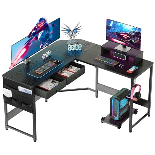 YeTom ゲーミングデスク パソコンデスク 机 l字デスク 125cm x 125cm ゲーミングテーブル pcデスク収納袋付き学習机 computer desk 作業机 gaming desk 引き出し付きデスク 黒い