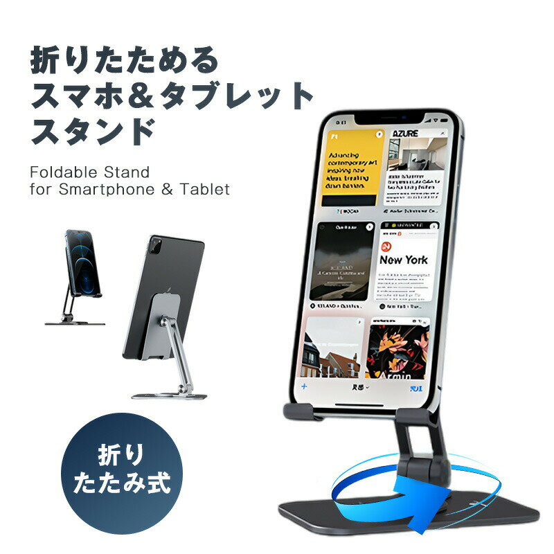 【マラソン限定P2倍&300円オフクーポン】スマホスタンド タブレットスタンド スマホ スタンド 折りたたみ 360°回転 スマートフォンスタンド 携帯スタンド スマホホルダー iPhone iPad スタンド 卓上 角度 高さ 調整 送料無料 金属製