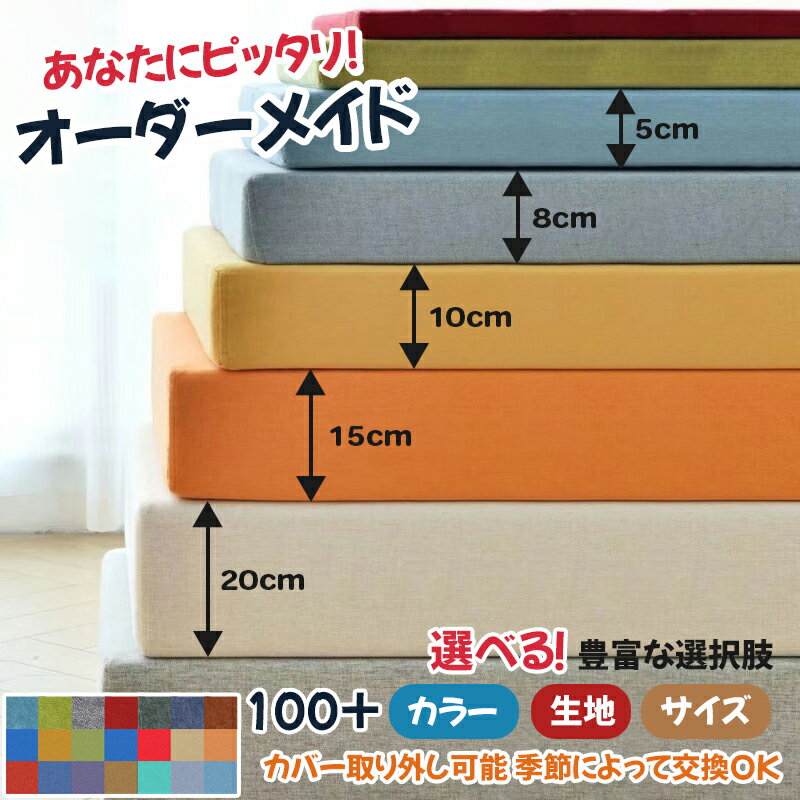 【オーダーメイド1980円から】オーダーメイド クッション 座布団 長座布団 5cm 8cm 10cm 15cm 20cm ざぶとん ソファクッション カスタマイズ 高反発 シートクッション ベンチ ベンチ用座布団 ベンチシート スポンジパッド カバー取り外し可能 イレギュラーにも対応