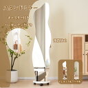 全身鏡 姿見鏡 ハンガーフック アーチ形 ハンガーフック付き鏡 アーチ形 イレギュラ ハンガー 360°回転可能なキャスター付き 収納付き 衣類 隙間収納