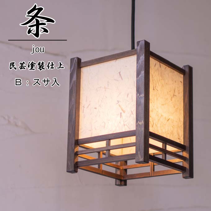 和照明 条 jou 【幅170×高さ230】 国産杉 民芸塗装仕上げ 【B:スサ入】 木製フレーム 強化和紙ペンダントライト 国産 和風照明 木組+和紙(ワーロン) 和風和室照明 インテリア照明 【送料無料】