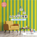 【1m単位 切り売り】【ストライプ幅11.25cm】 壁紙 ストライプ 太め インテリア 国産壁紙 のり付き アクセントクロス グリーン イエロー かべがみはるこ センとマル ロンドンストライプ 【lst0064n】