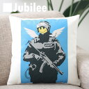 【バンクシー Banksy クッションカバー】 Flying Copper 北欧デザイン 45×45cm リネン Jubilee London 天然の麻を含んだハンドメイド プレゼント ギフト レトロスタイル 新生活 新居 引越し祝い 新築 子供 家 おうち おしゃれ