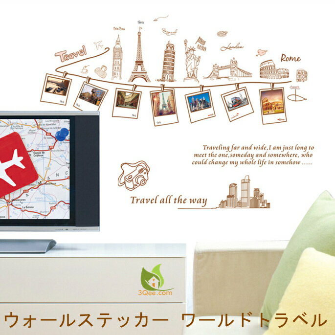 ウォールステッカー おしゃれ フレーム ワールドトラベル 楽しい思い出 エッフェル塔 ピサの斜塔 ビッグベン ロンドンブリッジ ロンドンバス 赤いバス ヨーロッパ USA 自由の女神 台紙60×90cm 壁紙 シール 賃貸OK はがせる 剥がせる DIY 模様替え インテリア 写真枠