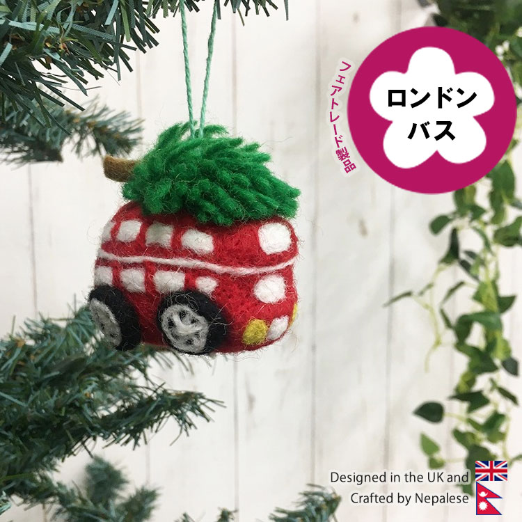 クリスマス オーナメント クリスマス飾り ロンドンバス 置物 オブジェ 車 クリスマスツリー フェルト小物 イギリス雑貨 フェアトレード ストラップ クリスマスプレゼント ギフト プレゼント プチギフト 大人 女性 もらって 嬉しい もの 贈り物 ロンドン ネパール