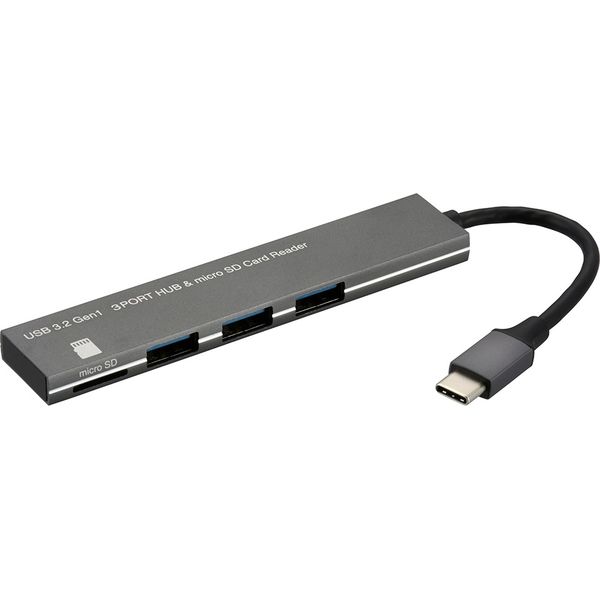 オーム電機 PC-SH3PC08-H [USBハブ 3ポート microSDカードリーダー付き USBType-Cコネクタ]