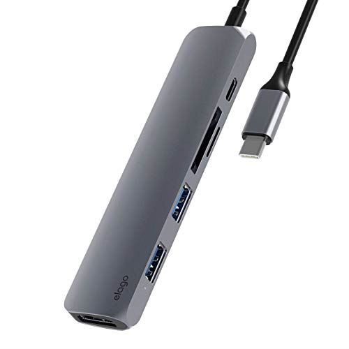 【elago】 USB C ハブ 6 in 1 USB Type C ドッキングステーション 4K HDMI出力 PD パワーデリバリー 充電 対応 USB-C / USB3.0 / SDカード/microSDカード/HDMI スロット 搭載 [ Mac OS/Windows OS/Chrome OS 各種対応 ] マルチ 変換 アダプタ ダークグレー
